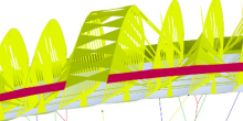 V-wsparcia przez otwory w żebrach. Zapewniają one integralność strukturalną. Zwiększają stabilność całej konstrukcji nawet po silnym zahamowaniu skrzydła. Jest to szczególnie ważne blisko krawędzi spływu, gdzie profil jest cieńszy, ukośne żebra są płytsze i przenoszą większe obciążenia.