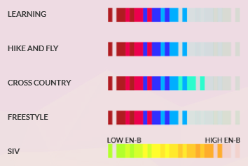 Wyniki testów certyfikacyjnych i wynikająca z nich możliwość bezpiecznego latania z większym obciążeniem od założonego, zaowocowały decyzją o rozszeszeniu certyfikowanego zakresu wagowego dla 4-rech rozmiarów XS = 50-70, S = 60-95, M = 75-100, ML = 88-113.